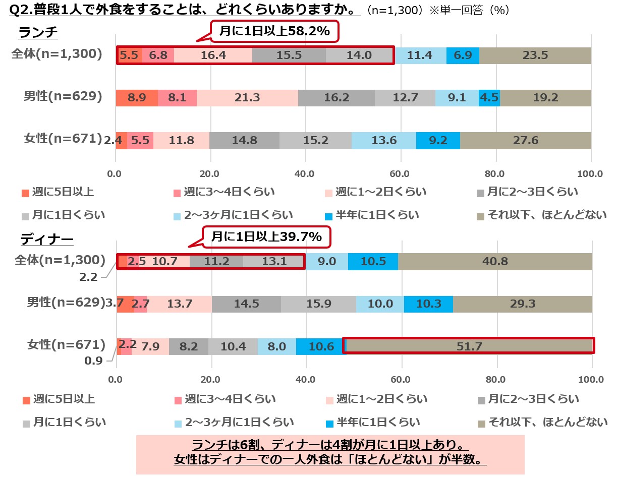 外食「ソロ活」定着! ランチ6割、ディナー4割が月に一度以上